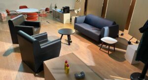 Om de training goed vorm te geven bouwden Walst en Ter Hall een bijna filmsetwaardige huiskamer na. Die bestond uit onder andere een voordeur, kozijn, bank, twee fauteuils, een salontafel, koffiezetapparaat, eettafel met stoelen en een lamp. ‘En dan voegden we ook nog kleine elementen toe, zoals een gereedschapskist met een hamer en koevoet. Die maakten het verschil, zie je ze wel of niet liggen?’ aldus Walst. En door schuifpanelen om de set heen te zetten en gebruik te maken van theaterlampen, werd er een intieme sfeer gecreëerd. Tijdens de training klopten om de beurt één of twee behandelaren op de deur om bij de denkbeeldige cliënt(en) op bezoek te gaan. En dat was best spannend. ‘Ik moest mezelf wel even een drempel over mikken, letterlijk. Ik denk omdat het zo realistisch was, dat maakt dat het heel echt voelde,’ aldus Revet.